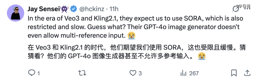 当微软终于宣布将它免费向用户开放时,这个消息并未掀起预期中的热潮,反而透着一股尴尬的迟到感。网友对这款产品的“自来水”评价很差,甚至直言:我们已经有了可灵和Veo,为何还用Sora?