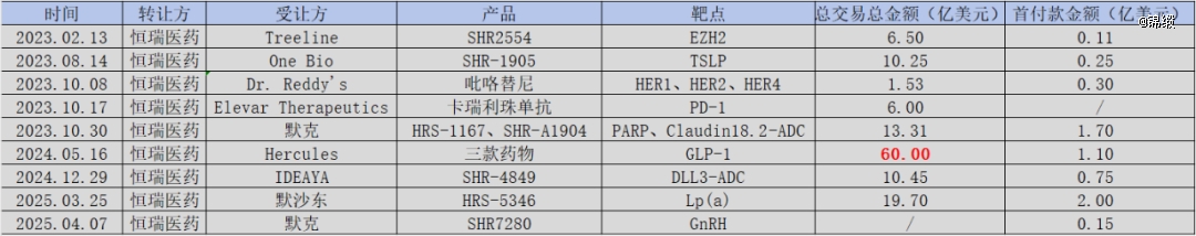 但恒瑞医药真的亏了吗?我认为并没有。一直以来,恒瑞医药都被市场贴上了“me-too”标签,这导致很长一段时间中,市场并没有充分认可恒瑞医药的“源头创新”能力。虽然恒瑞医药从2023年正式开始重视与其他企业的合作,但却始终未能授出重量级产品,所授出产品的首付款也都很低。