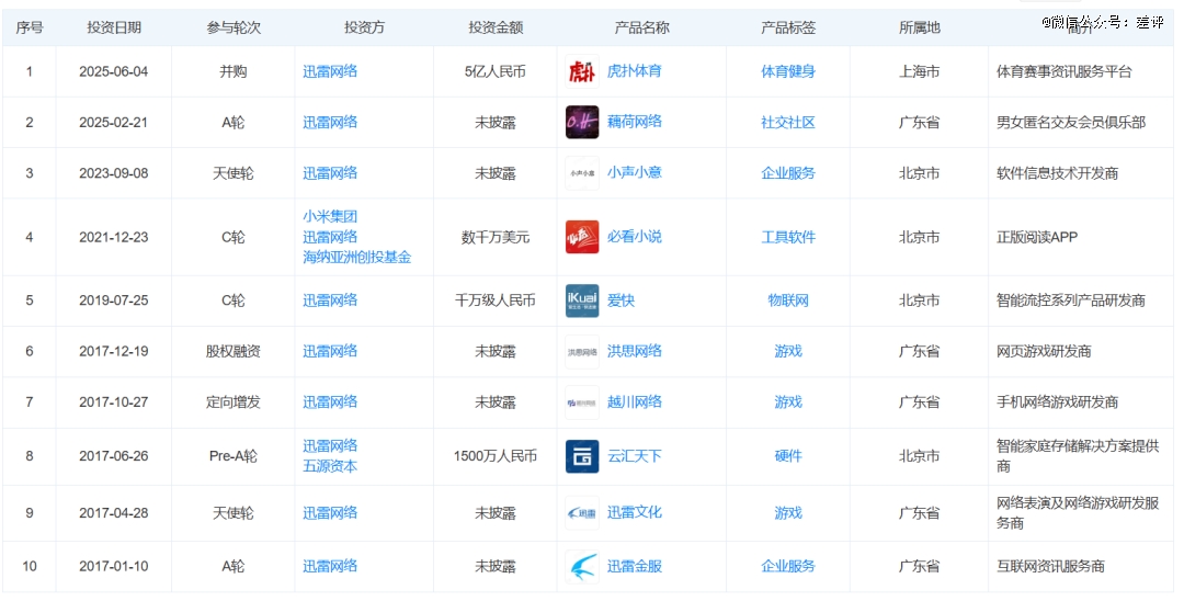 其实从 2014 年开始,迅雷一直在投资市场上活跃。基本啥都投一点,范围从硬件到游戏,从物联网到男女社交。