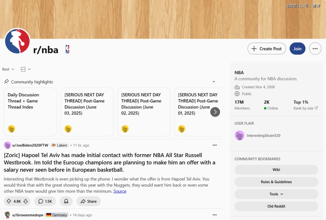 再加上,论坛搭建了比较完备的生态,像赛程、比分追踪、新闻热帖等等。就像在国外,X 也打不过 Reddit 的 NBA 板块。
