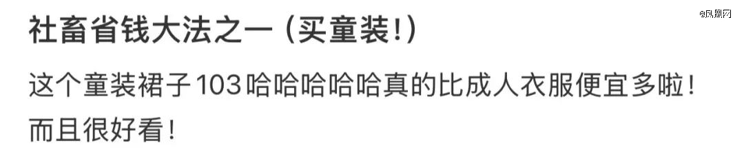 “你们不知道吗?现在穿童装、吃童饭、用童品真的很流行,因为能便宜很多。