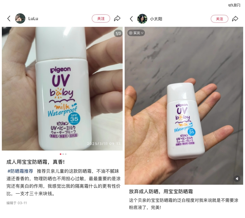 同样30来块钱一支的宝宝防晒,那泛白的程度,对很多人来说刚好不需要涂粉底了。