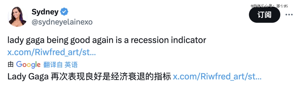 “只要Ladygaga又开始唱吵死人的歌,感觉经济就要复苏了。”
