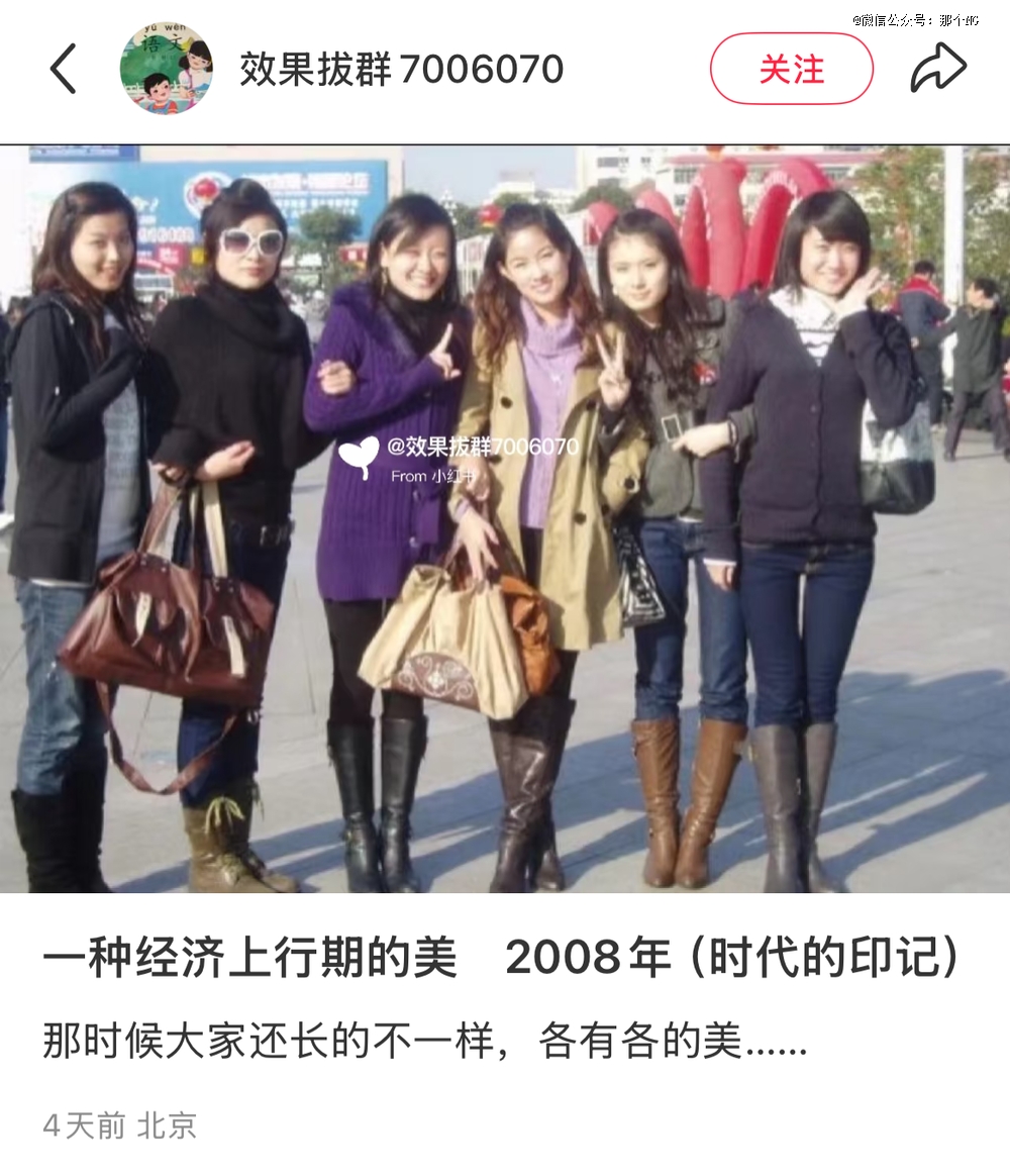 热裤露背吊带高跟鞋紧腿裤,夸张到*的彩色眼影,每个人铆着劲般地成为主角。而现在高跟鞋快要退出时代舞台,优衣库的黑白灰T恤和肥裤子变成了每个NPC的固定穿搭。