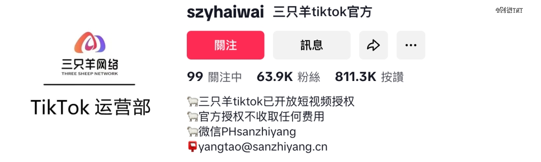 TikTik @szyhaiwai(三只羊TikTok官方) 截图
