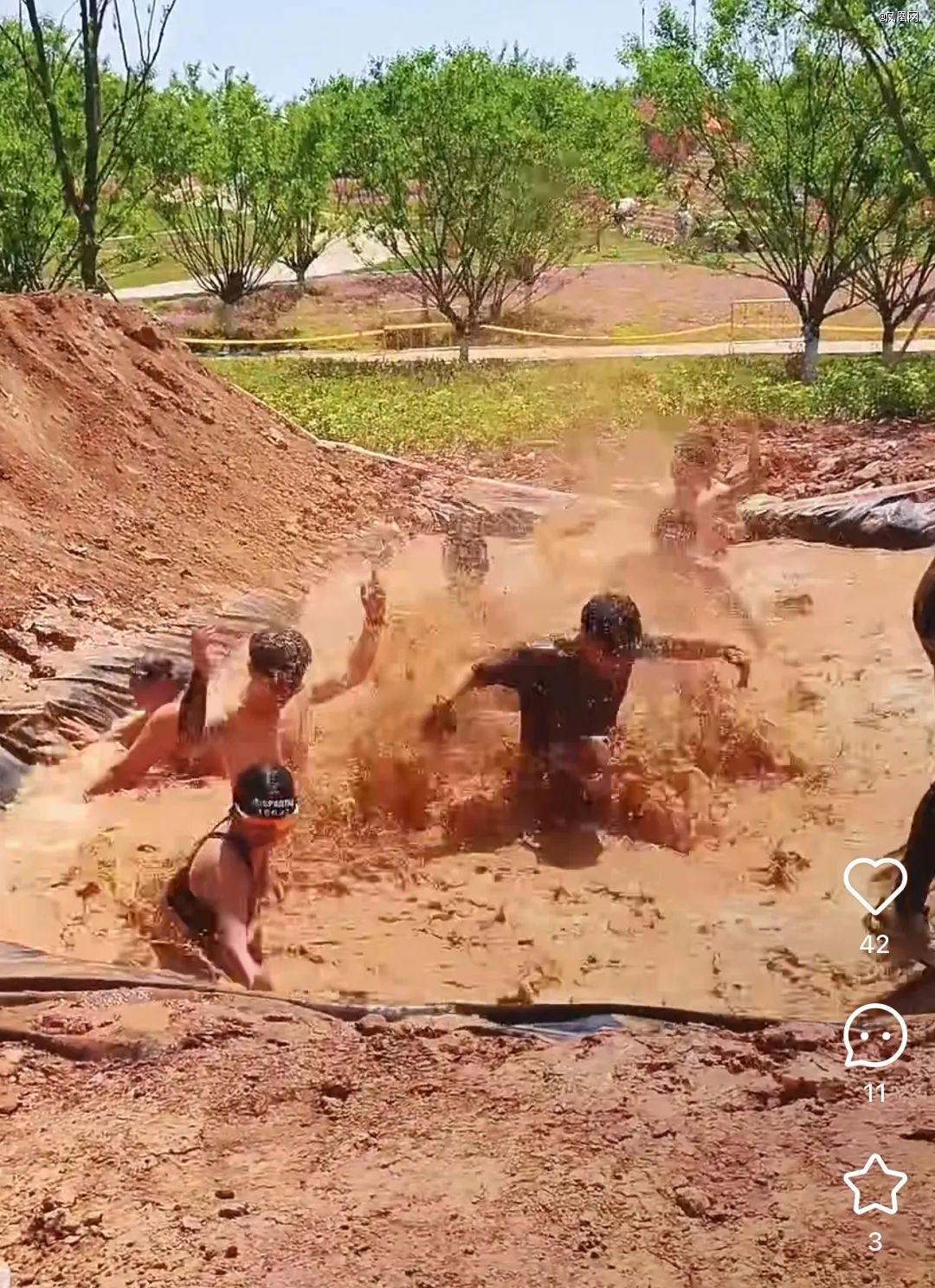 还鼓励参赛者之间团队协作,来帮助体力稍弱的朋友完成高难度项目,“猛男大轿”“友情铁手”这种温馨场面在泥坑里屡见不鲜。