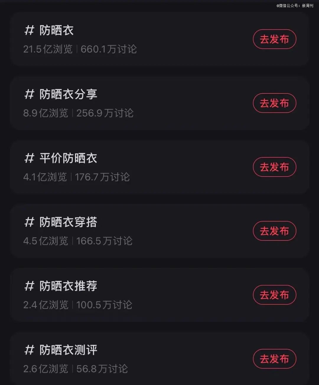 防晒衣在社交平台上拥有超高话题量。(图/小红书截图)