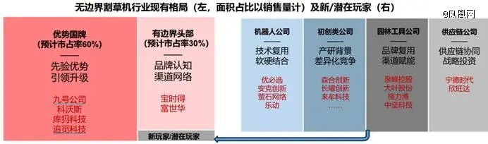 在智能割草机器人领域,2023年之前长期由两家欧洲企业主导:一家是瑞典工业巨头Husqvarna,全球市占率超50%,主打高端埋线式割草机器人,产品价格普遍在2000美元以上;另一家公司Worx,旗下品牌Worx Landroid在欧洲多国市占率超50%(德国54%、法国53%),年销量超40万台。两家巨头公司产品主要采用物理埋边界线,安装成本大概在300欧元左右。