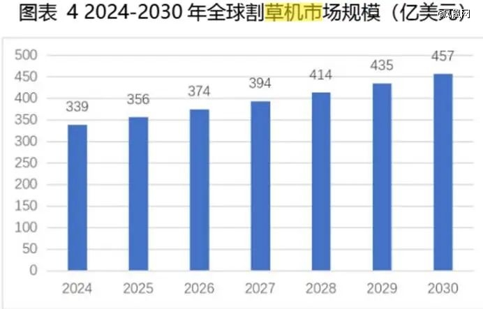 光大证券研报指出,全球割草机市场规模2024年达339亿美元,预计至2030年将达到457亿美元。2024-2030年间,全球割草机市场规模将保持5.1%的复合年均增长率,前景巨大。