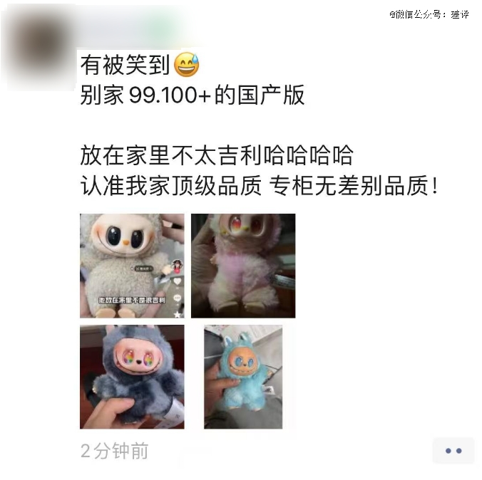 像咱们看到的什么 Lafufu 和 Lababa 这类假货,就属于祖国版,这也是市面上流通最多的。