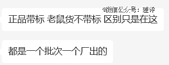 老鼠货和正品出自同一个工厂,属于没打标的正品。