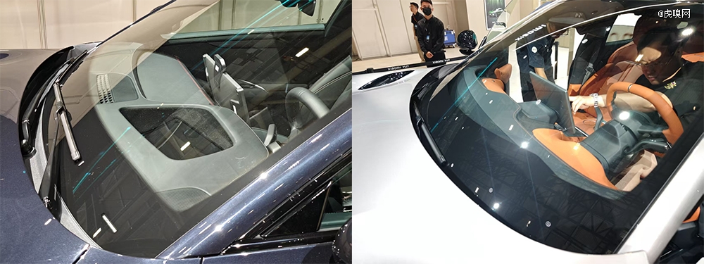 天际屏因为是投射到涂黑的前挡风玻璃上,防炫光效果*,车展的充分光照下依旧背景纯黑,图为虎嗅自拍