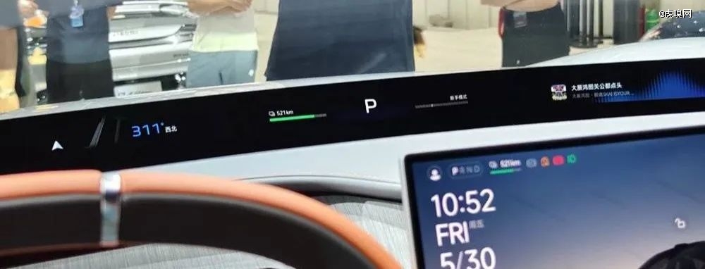帮助仪表台在高度上进一步缩减的“天际屏”实际使用体验也可以用“出色”概括,通过将前挡风玻璃下沿更大面积进行涂黑处理,并在最前方嵌入Mini-LED屏幕,为用户呈现出一块完全不受方向盘遮挡的显示区域。其视觉效果远超普通HUD,且能同时为副驾驶提供完整的观影或信息显示。