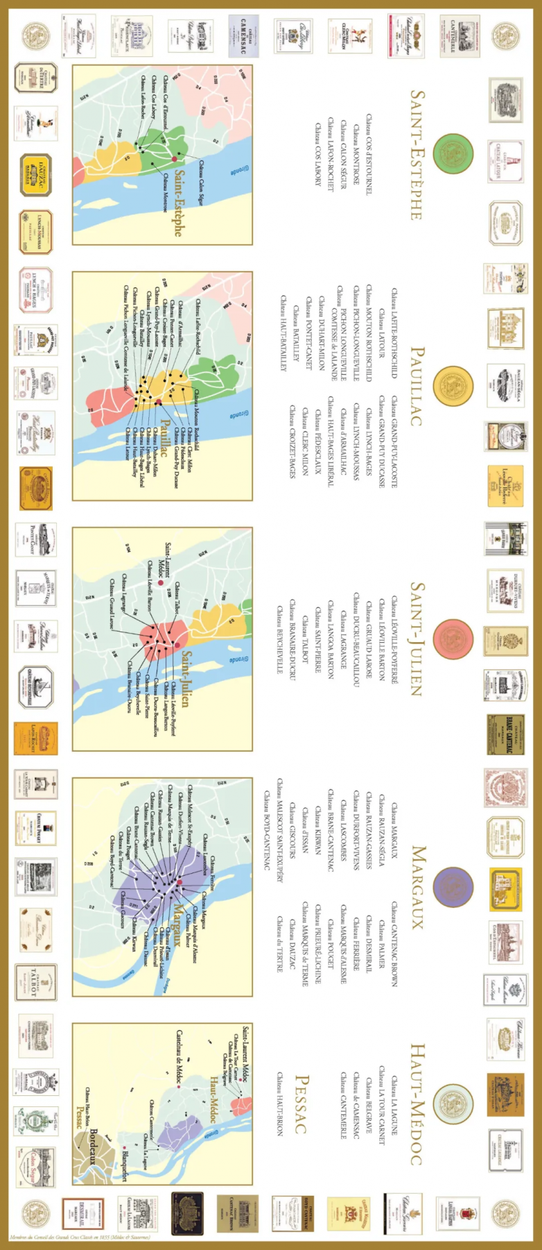 虽然皇帝要的是整个波尔多葡萄酒的甄选列表,但这份名单除了彼时风靡英伦上流社会的名庄侯伯王 Haut-Brion 是位于格拉夫 Graves 之外,其余诸酒庄无一不位于北部的梅多克 Médoc 地区。当然了,这本来也只是波尔多中介商为世博会临时赶制的分级,如果他们知道日后这份列级名单被奉为圭臬,怎会不更谨慎些呢?