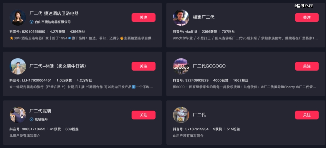 小红书上,大部分的厂二代账号粉丝只有两三位数,发布的作品只有个位数。抖音上的账户,更多也只是少数人成功,大部分厂二代都在浅尝辄止之后,继续湮没在网络的浩瀚海洋中。