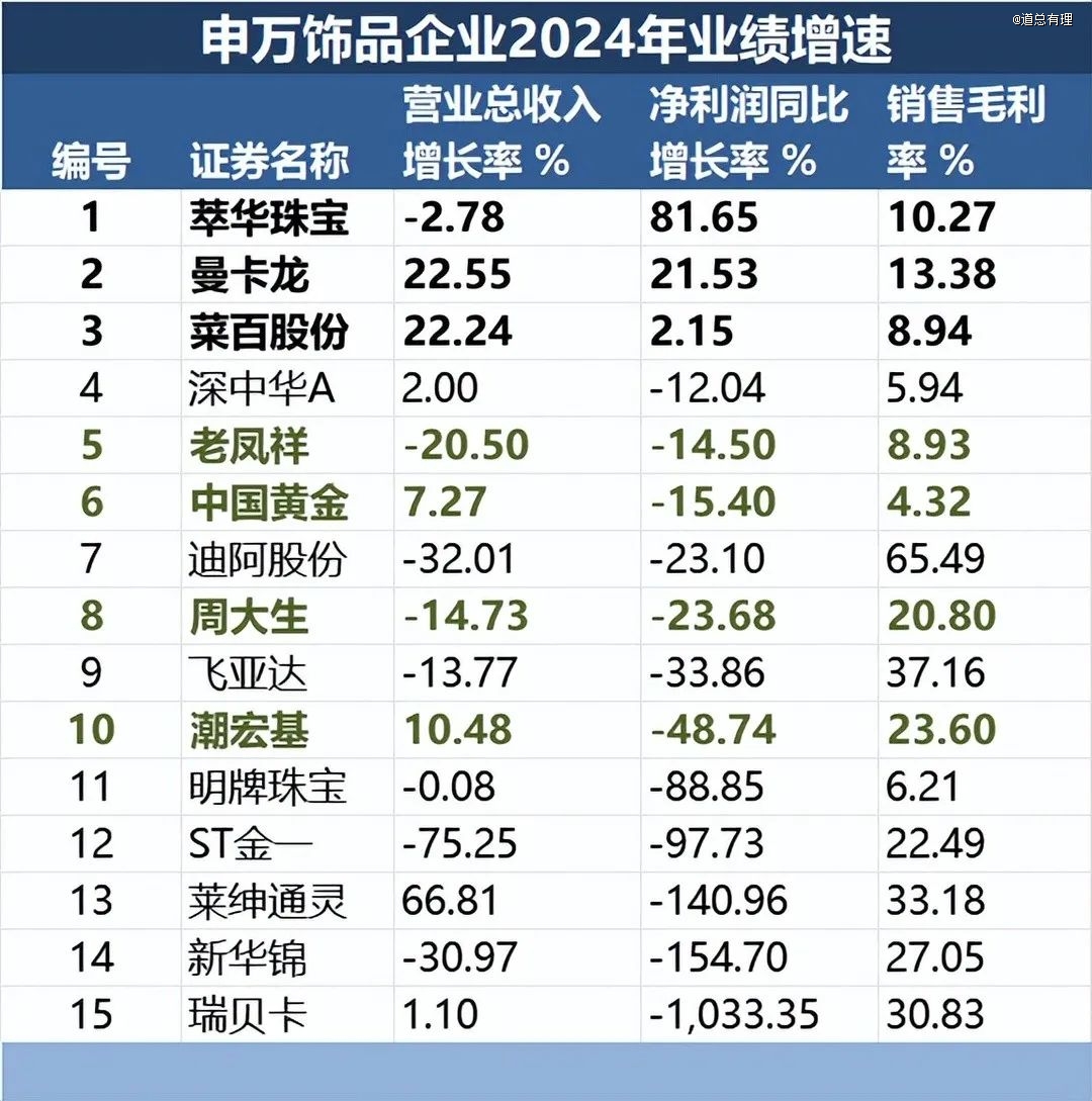 2024年,十五家珠宝上市企业中,高达13家净利润下滑,老凤祥、中国黄金、周大生皆在其列。2025财年,周大福营业额896.56亿港元,同比下降17.5%;归母净利润同比下降9.0%;内地同店销售同比下降19.4%,中国香港及澳门市场下滑26.1%。
