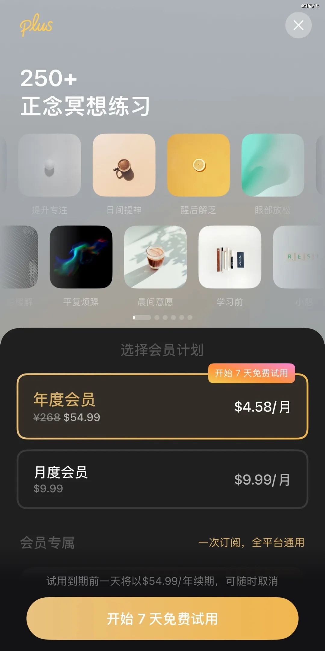 在当年学霸猫的事件中,为她的课程买单是一种“知识付费”。而在今天,买课的付费逻辑没有更改,消费者似乎却不再认为自己买的是知识,更像是买了体验或治疗。相比之下,疗愈APP的付费模式则更贴近成熟的互联网产品逻辑:开会员,里面的冥想音频随便听。