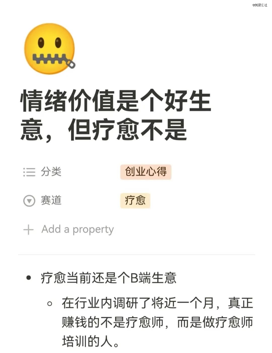 那些疗愈赛道的创业者,有不少正是之前曾深度体验疗愈的人——这可能是出自ta们由内而外的认可与热爱。但并没有那么多病人会在痊愈之后想当医生,这是疗愈行业内略显可疑的再生产。但缺乏行业客观标准的事实,让我们只能疑罪从无。