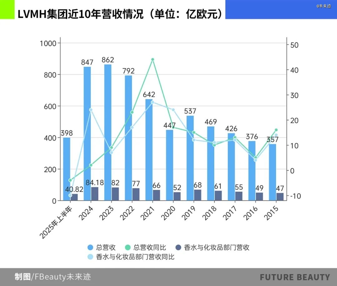然而在整体收缩的曲线中,一条支线逆势拉平——香水与化妆品部门以40.8亿欧元(约合人民币343.4亿)的持平营收,成为集团少有的没有继续下探的板块;丝芙兰更以“营收和利润双丰增长”被管理层点名表扬。