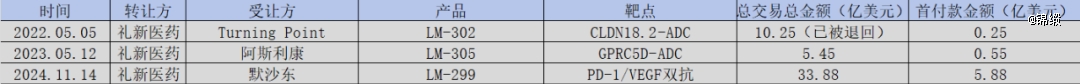 图:礼新医药BD交易一览,来源:锦缎研究院