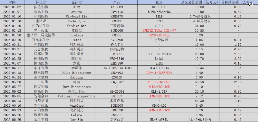 图:2025年上半年重点BD交易一览,来源:锦缎研究院