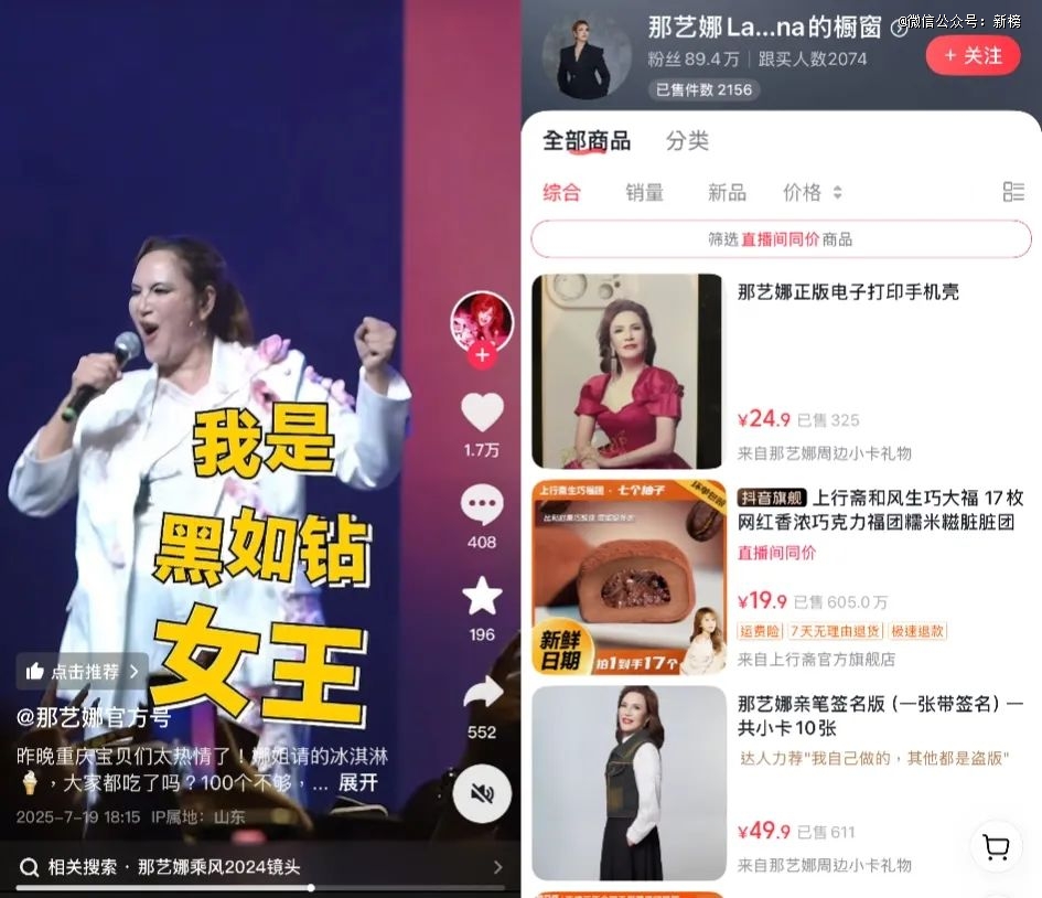 商业带货上,她同样生猛。7月中旬,那艺娜为好望水站台,一首《辣一辣》唱罢,抖音直播间涌进24万人,是往常的20倍;专属商品链接下,有2419单销量。