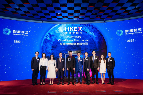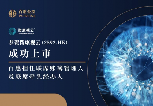 2025 年7月3日上午,Cloudbreak Pharma Inc.(下称“拨康视云”),股票代码2592.HK,正式登陆香港联交所主板,每股定价为10.10港元,录得近78倍超额认购,百惠金控团队担任联席账簿管理人及联席牵头经办人。