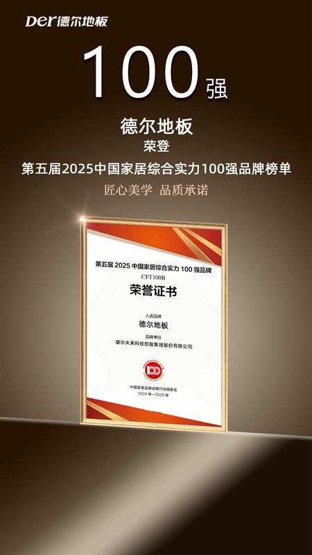 入选2025中国家居综合实力100 强品牌,不仅是品牌实力的彰显,更为品牌带来了更多机遇与责任。未来,德尔地板将借助这一平台,进一步整合资源、深化创新、拓展市场,为消费者提供更多家居解决方案,创造绿色美好生活体验,引领行业迈向更高品质发展阶段。