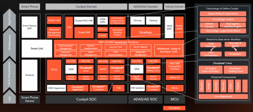软件方面,随着智能汽车E/E架构逐渐趋于集中化,汽车软件系统出现了多种操作系统并存的局面,这也导致系统的复杂性和开发成本的剧增。亿咖通·云山跨域软件平台采用SOA分布式通信架构,可以支持完整的智舱、智驾、车控、手机域的所有相关软件栈,同时兼容AUTOSAR标准的中间件,从而实现软硬件的充分解耦,降低开发成本的同时还能快速适配不同生态系统,并将解决方案的开发周期缩短20%以上。