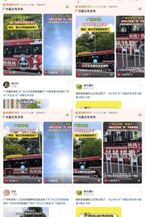 一串看似手滑的发疯文案,瞬间点燃了夏日话题,冲上广东多地抖音热榜。从天河到番禺,从汕头到韶关,这辆“弹幕公交”短短几天就刷屏广东人的社交平台。网友们纷纷晒图打卡,连平时不怎么发圈的阿叔都忍不住拍照:"热到顶唔顺!呢部公交讲出我心声!"