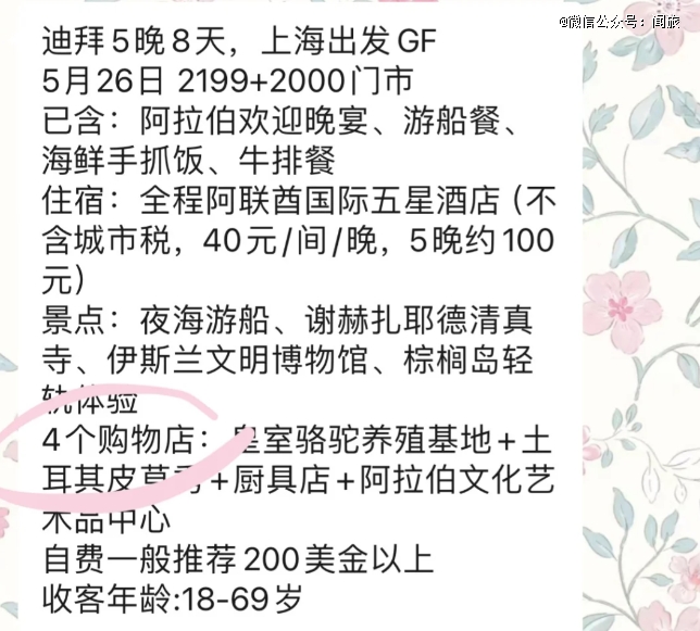 一两千或是几百块游迪拜,价格这么低,不用过脑子都知道,光是“机+酒”的成本都相距甚远,一定有猫腻。
