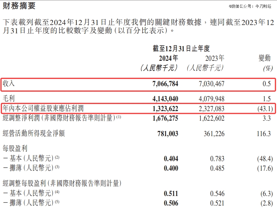 然而,从2024年的业绩表现来看,其高端化战略成效并不显著。