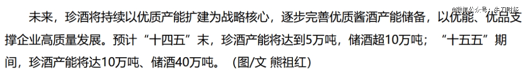 按照珍酒的规划,“十四五”末产能将达到5万吨,“十五五”期间更将进一步提升至10万吨,储酒量预计达到40万吨。