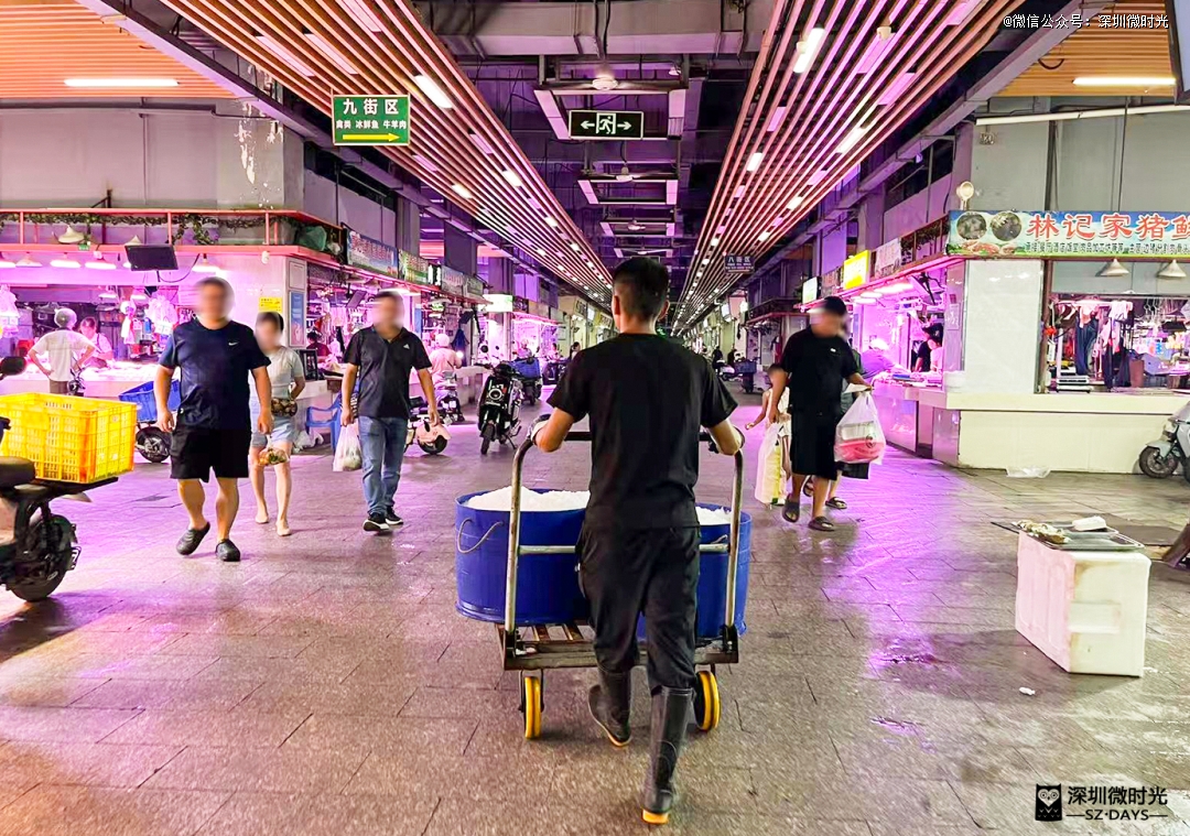 位于横岗的安商茂雄农批市场,占地面积接近4万平方米。从市场正门进入,穿过大大小小的农产品、蔬菜、肉类、海鲜档口,来到市场的最北端,就是老杨的深雪冰厂。