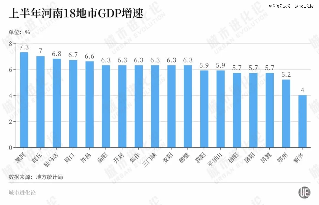 不过今年以来,发展速度却趋于放缓——数据显示,上半年河南17个省辖市和济源示范区中,郑州、洛阳GDP增速排名靠后,分别为5.2%、5.7%,分别较一季度下滑0.4、0.2个百分点。