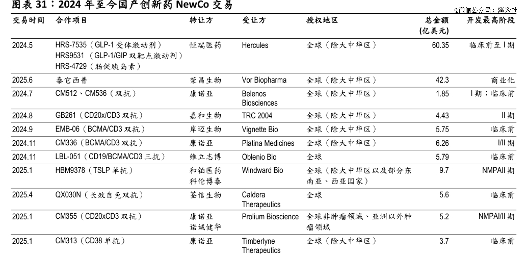以恒瑞医药为始,国产创新药NewCo不断落地,已经成为中国创新药出海的重要模式之一。今年前六个月,NewCo 交易金额占所有出海交易总金额的比例达12.4%。