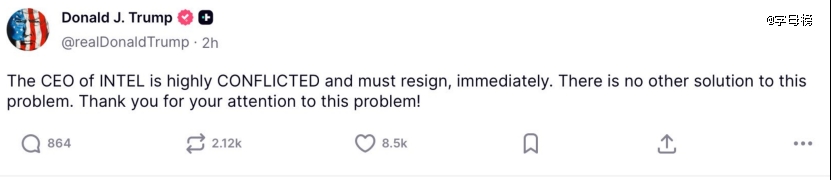 近日,特朗普直接在在自己的社交媒体上“下令”:陈立武因为利益冲突,必须辞去英特尔CEO!