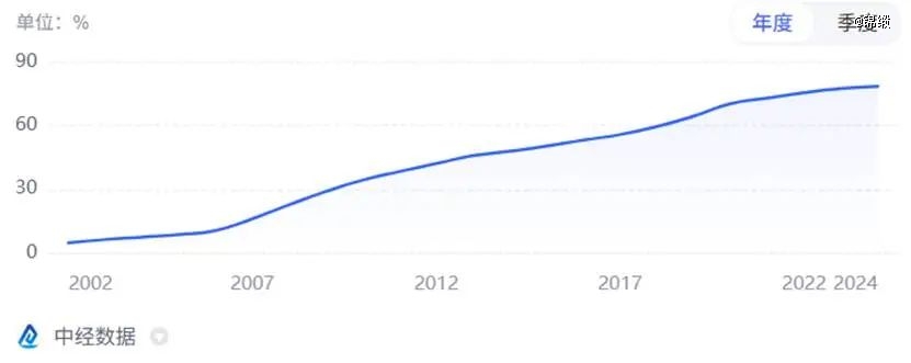 图:过去二十余载互联网普及率,来源:中经数据