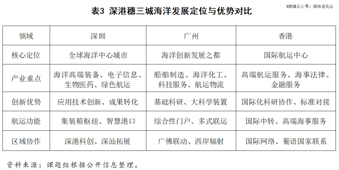 更进一步分工,广深可以结合自身禀赋特点在海洋科技创新、海事技术研发、营商便利度、政策制度等方面持续发力。香港则可以借助在海事金融与法律方面的资源与制度优势,成为三地协同发展的关键动力。