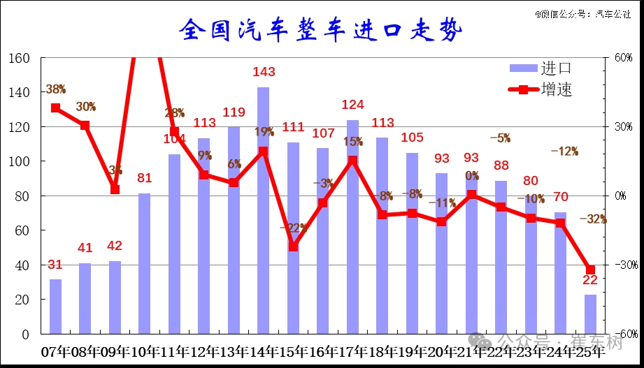 “2025年1—6月进口汽车22万辆,同比下降32%,这是近期少见的1-6月巨大下滑。”