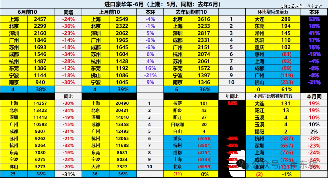 根据以上两段的已知信息,不难得出一个结论:6月中国进口车总量还未超过问界一个品牌的销量。
