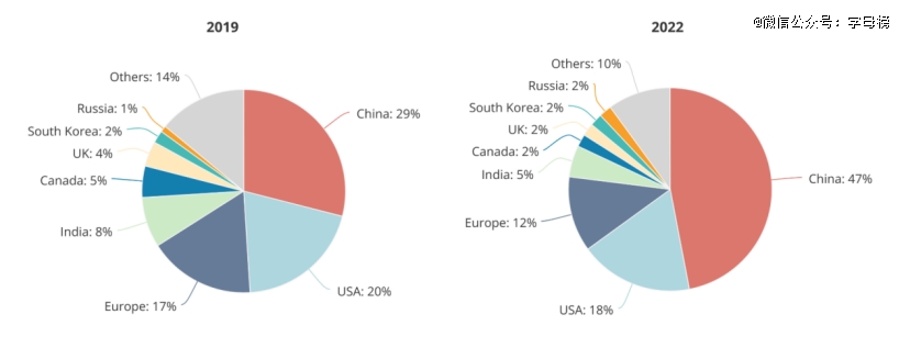 在2021年,授予在美国大学就读的国际学生的16694个科学与工程博士学位中,有5496个授予了中国学生,占比高达33%。相比之下,授予印度学生的博士学位为2572个。