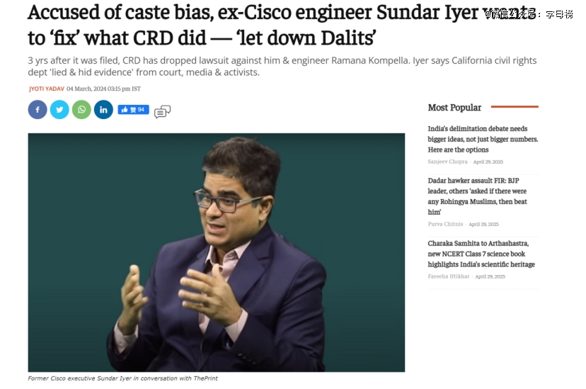 这类事件揭示了一个残酷的现实:一些印度裔管理者会将本土的社会等级观念带入硅谷,在招聘、晋升和日常工作中,不自觉地偏袒或歧视拥有特定种姓背景的同胞。