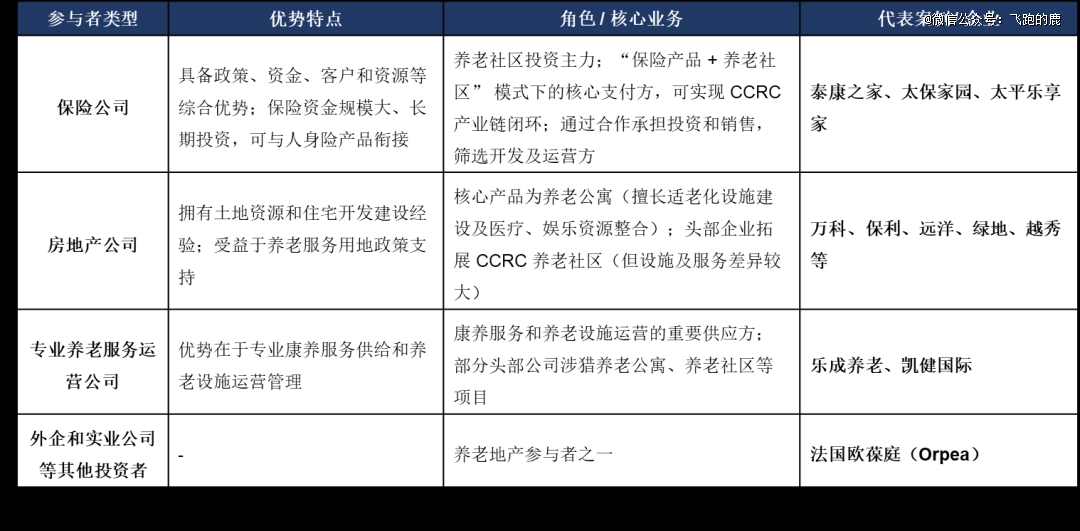 养老地产主要有四类参与者。房地产公司擅长房产开发,在建设养老居住设施方面优势突出。保险公司资金雄厚、精于风险管理,可为项目提供资金并结合保险业务。专业养老服务运营公司专注服务,能满足老人生活照料、健康护理等需求。外企和实业公司等其他投资者,外企可带来先进理念技术,实业公司能凭借产业资源丰富产业生态。四类参与者各有所长,在养老房地产业承担不同角色。