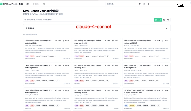 prompts:制作一款SWE‑Bench Verified数据库查询器,功能是可以轻松查询SWE‑Bench Verified有哪些问题,以及问题的链接,以及评分标准。