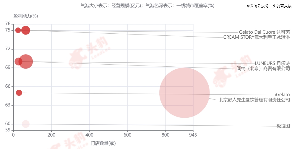 第 一梯队包括Venchi、野人先生等;第二梯队包括CreamStory、Luneurs、极拉图等;第三梯队包括达可芮、iGelato等。