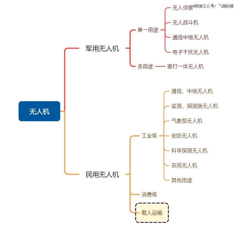 按照用途,无人机主要分成军用和民用两大类别。民用无人机还能再细分,包括工业级、消费级无人机(以及无人驾驶航空器)。