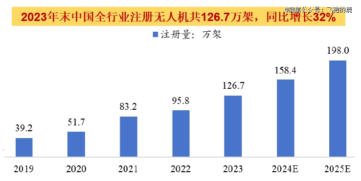 全球无人机发展进程里,我国起步晚却在民用市场 “弯道超车”。截至 2023 年 6 月底,我国无人驾驶航空器销量占全球约 70%。中商产业研究院统计,2023 年中国民用无人机市场规模 1174.3 亿元,注册无人机 126.7 万架,运营企业 19825 家,同比分别增长 32%、32%、31% 。