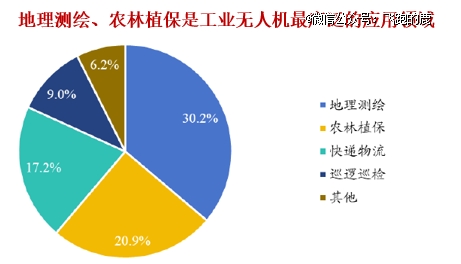 就当前应用领域而言,工业无人机用得最广泛的要数地理测绘和农林植保,这俩领域的市场规模加起来占比超 50%。快递物流和巡逻巡检加起来占 26.2%,不过它们的应用深度和市场需求还有提升空间。剩下 6.2% 的份额,分散在医疗、应急等几十个领域。