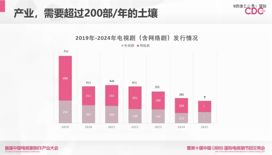 2019年-2024年电视剧(含网络剧)发行情况(图源:CDC)